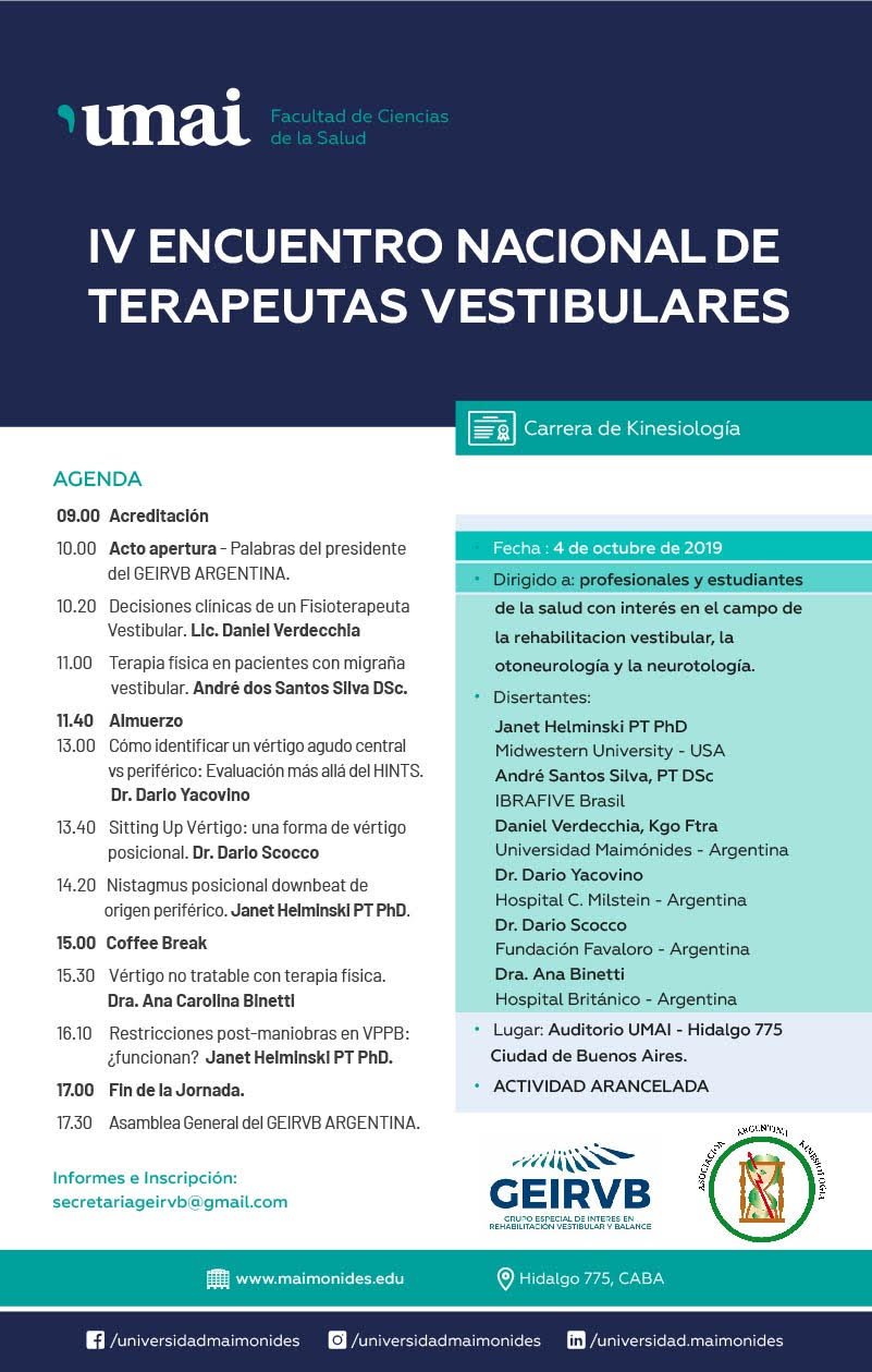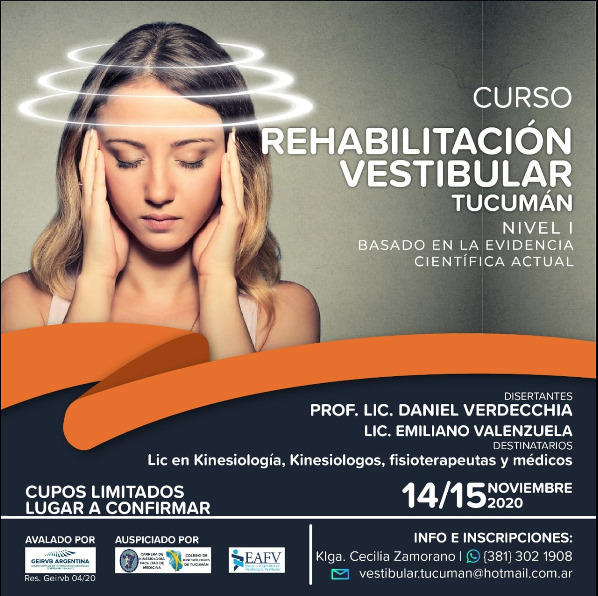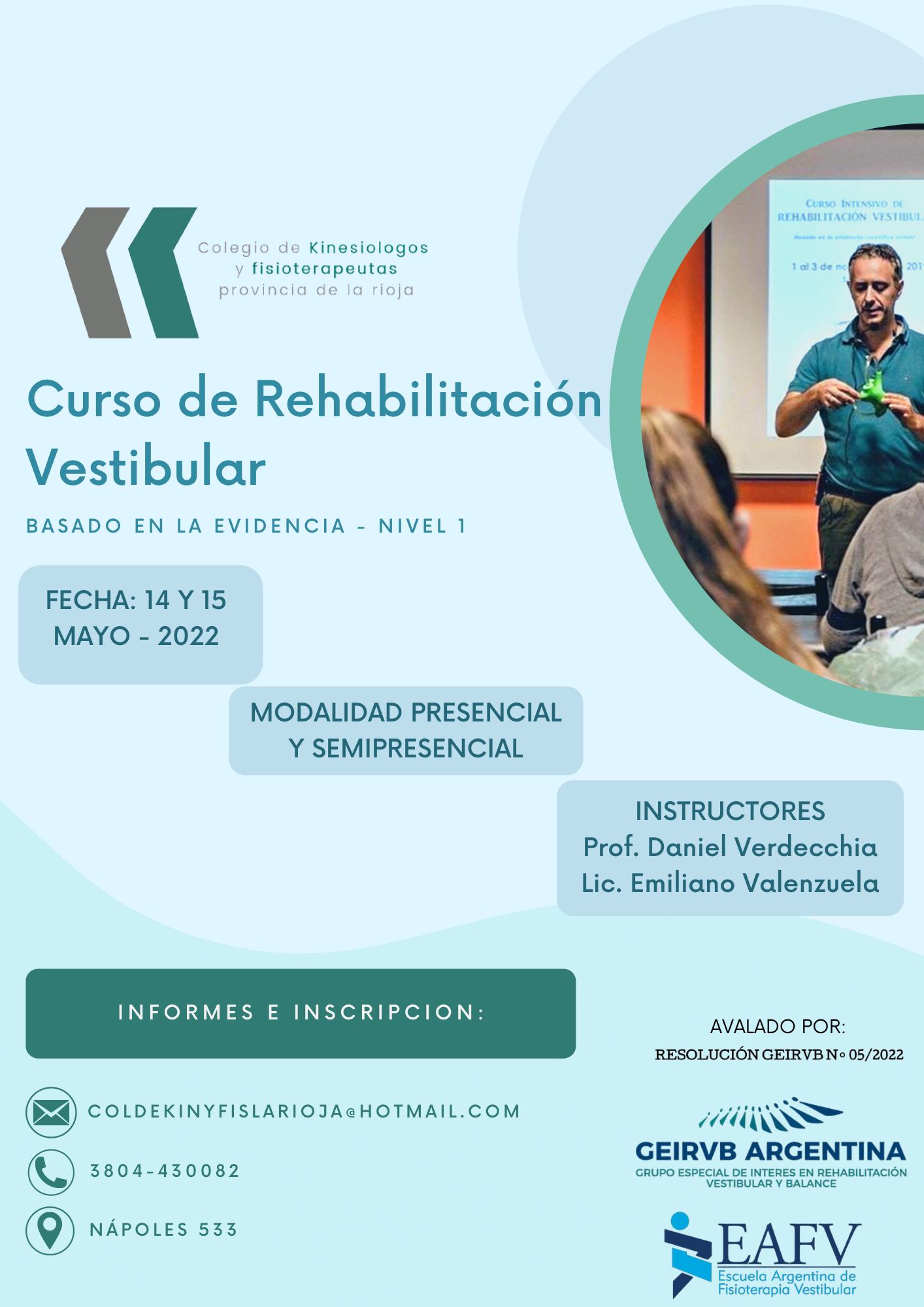 Inscripción: Colegio de Kinesiologos y Fisioterapeutas de La Rioja, Argentina coldekinyfislarioja@hotmail.com