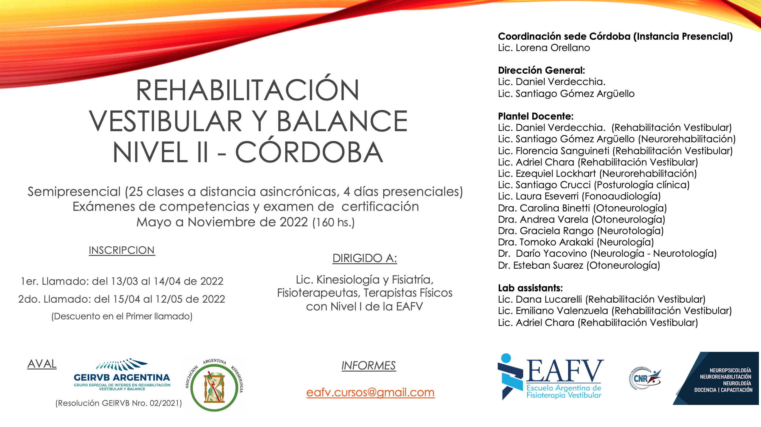 Informes: eafv.cursos@gmail.com